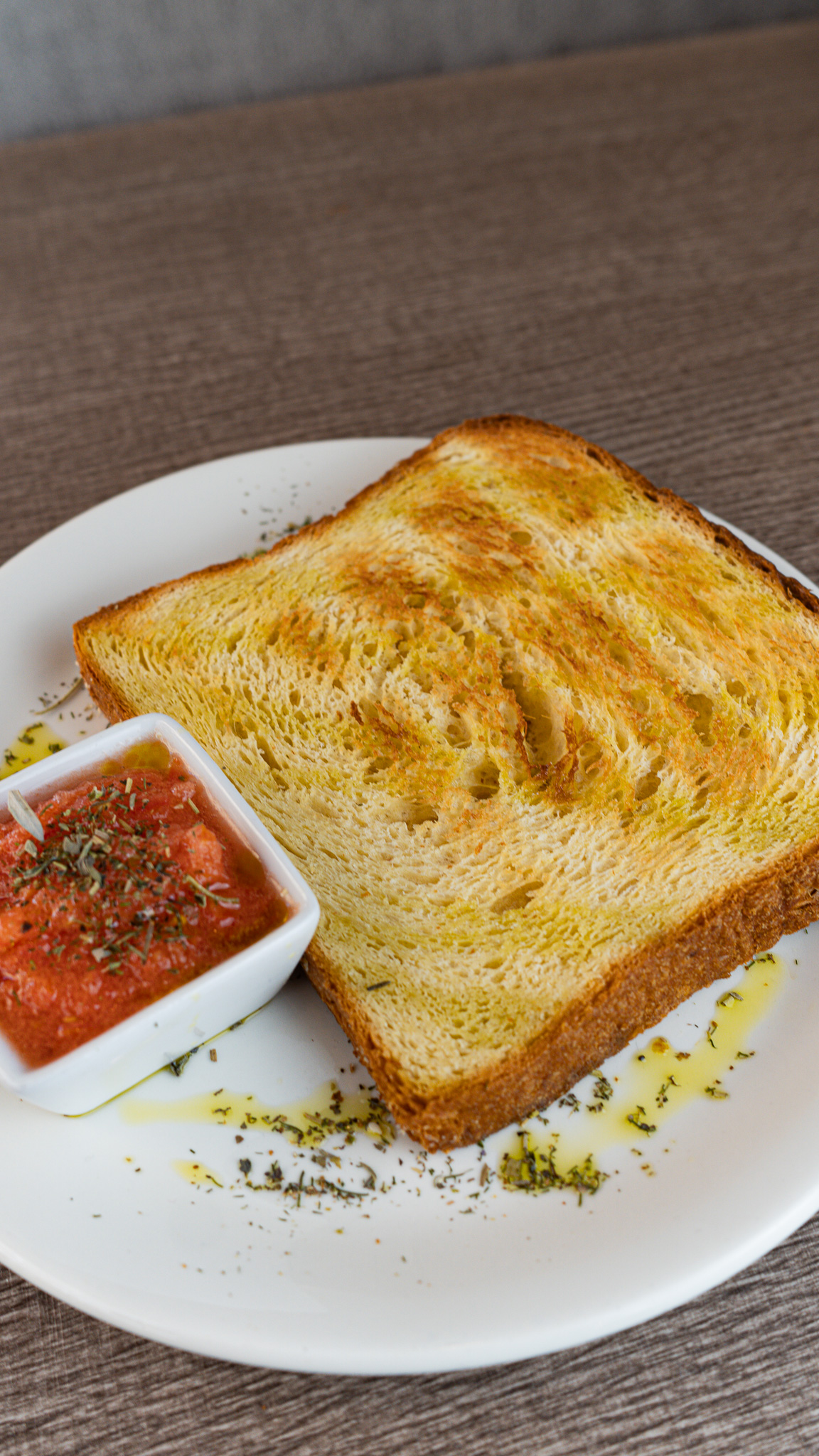 Artisanal brioche bread made in our bakery, lightly toasted and served with grated tomato.
